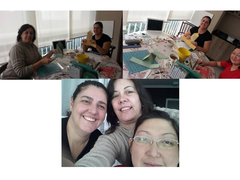 Teve um brunch  delicioso... guloseimas...hummmm ...bom papo, boas risadas...claaaaroooo... carimbadas!!! Nossa! Fiz vários cenários!! Me acabei! Da próxima vou mais cedo, viu, Vivi!!! kkkk